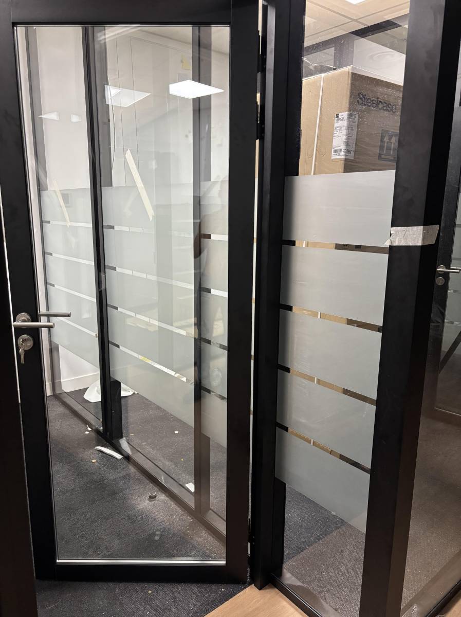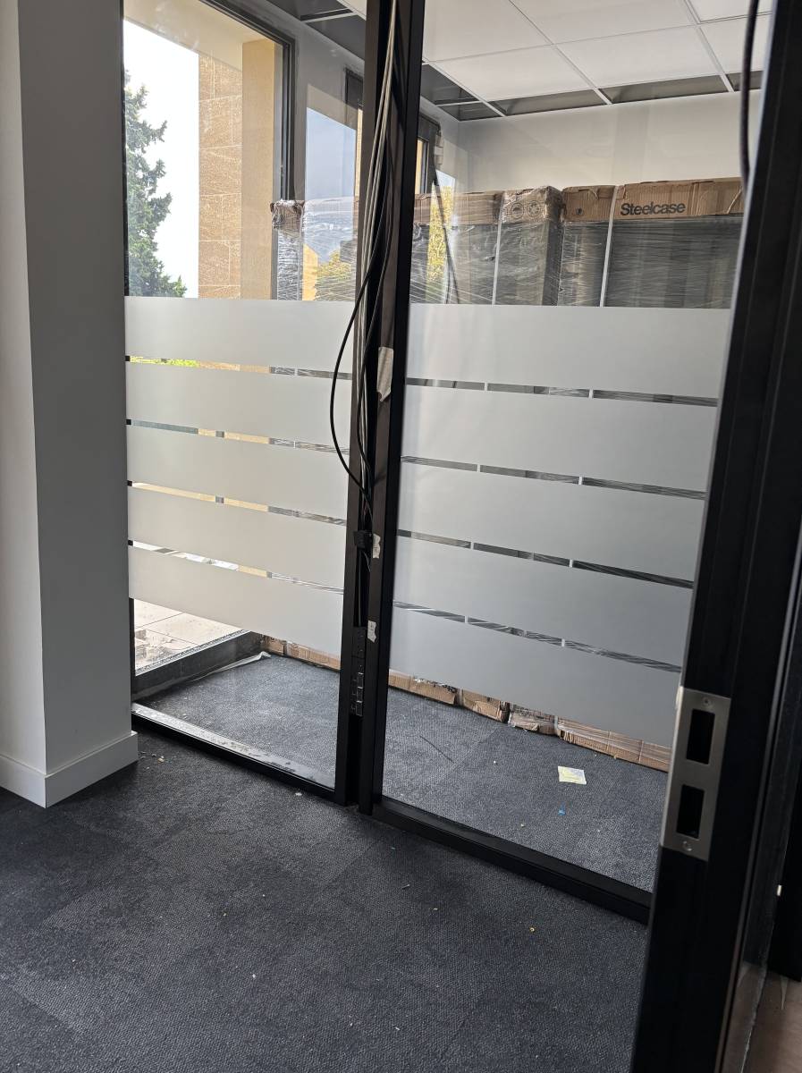Nous réalisons la fourniture et pose de vitrophanie adhésive effet dépoli sablé pour bureaux professionnels à Aix-en-Provence et dans toute la région des Bouches-du-Rhône. Spécialisés dans la découpe sur mesure, nous créons des bandes décoratives design en adhésif dépoli, parfaitement adaptées pour vos vitrages de bureaux.