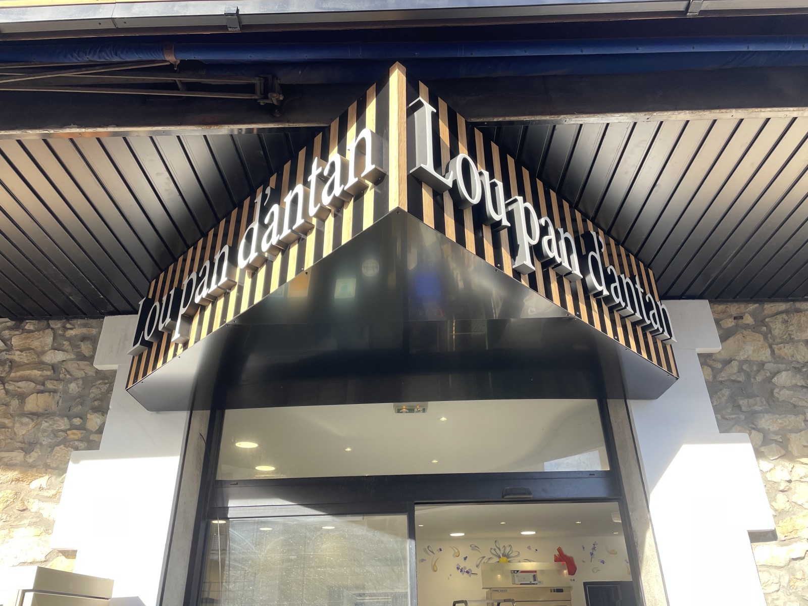 1. Enseigne en applique : Fixée directement sur la façade du commerce, elle est parallèle au mur et permet une visibilité frontale. Elle peut être lumineuse ou non.